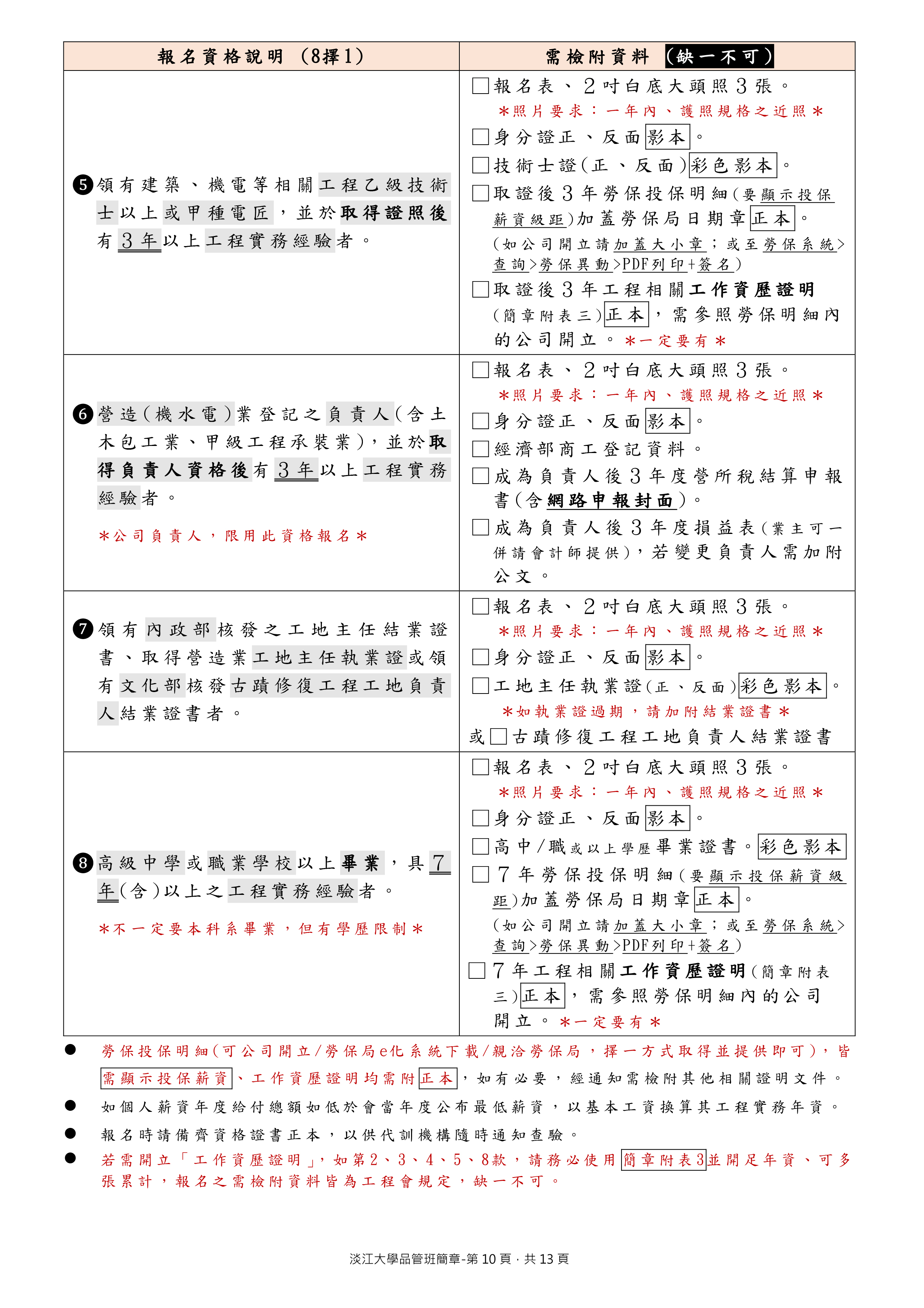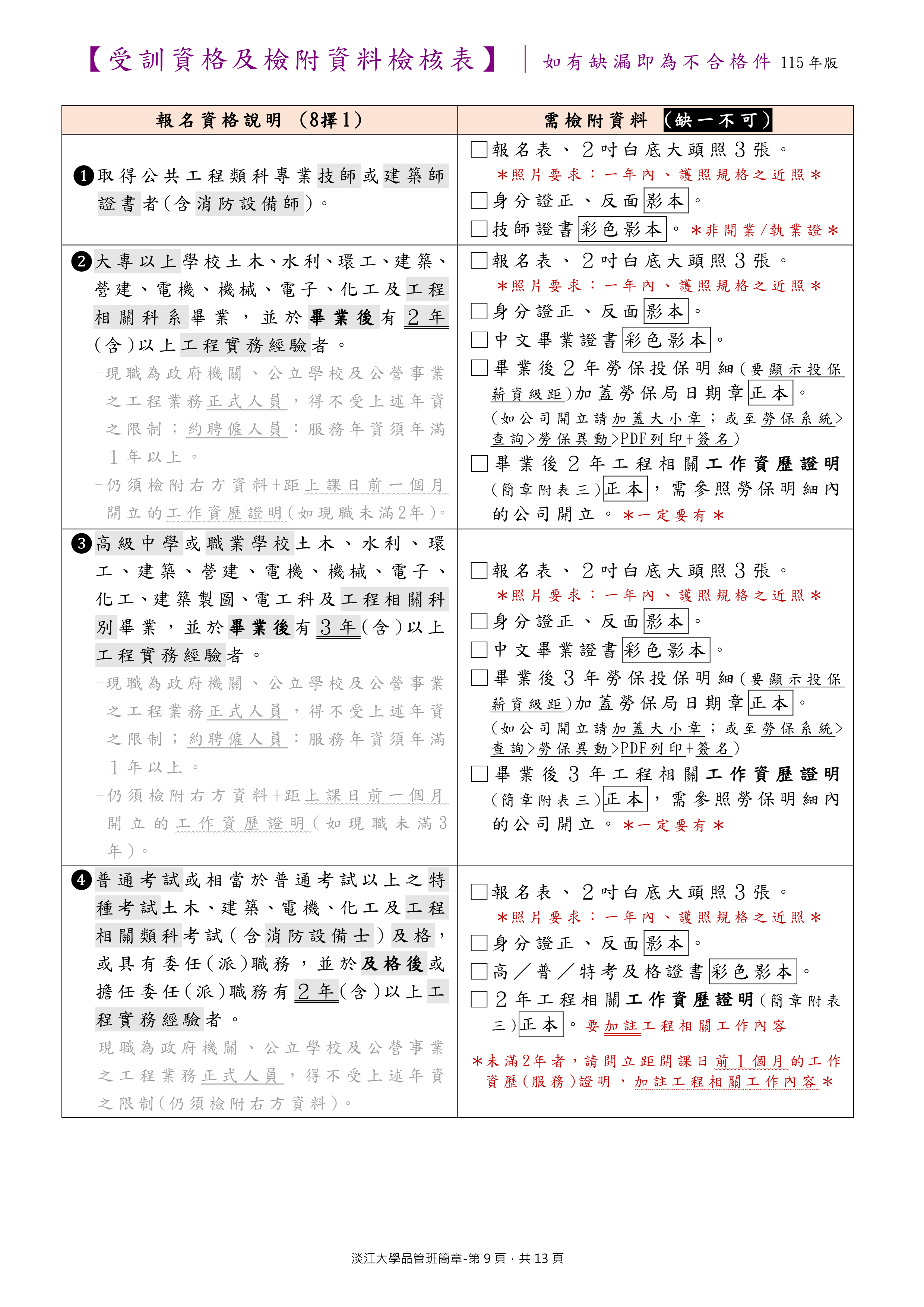 .受訓資格(8擇1),詳細檢附資料請見簡章第9~10頁