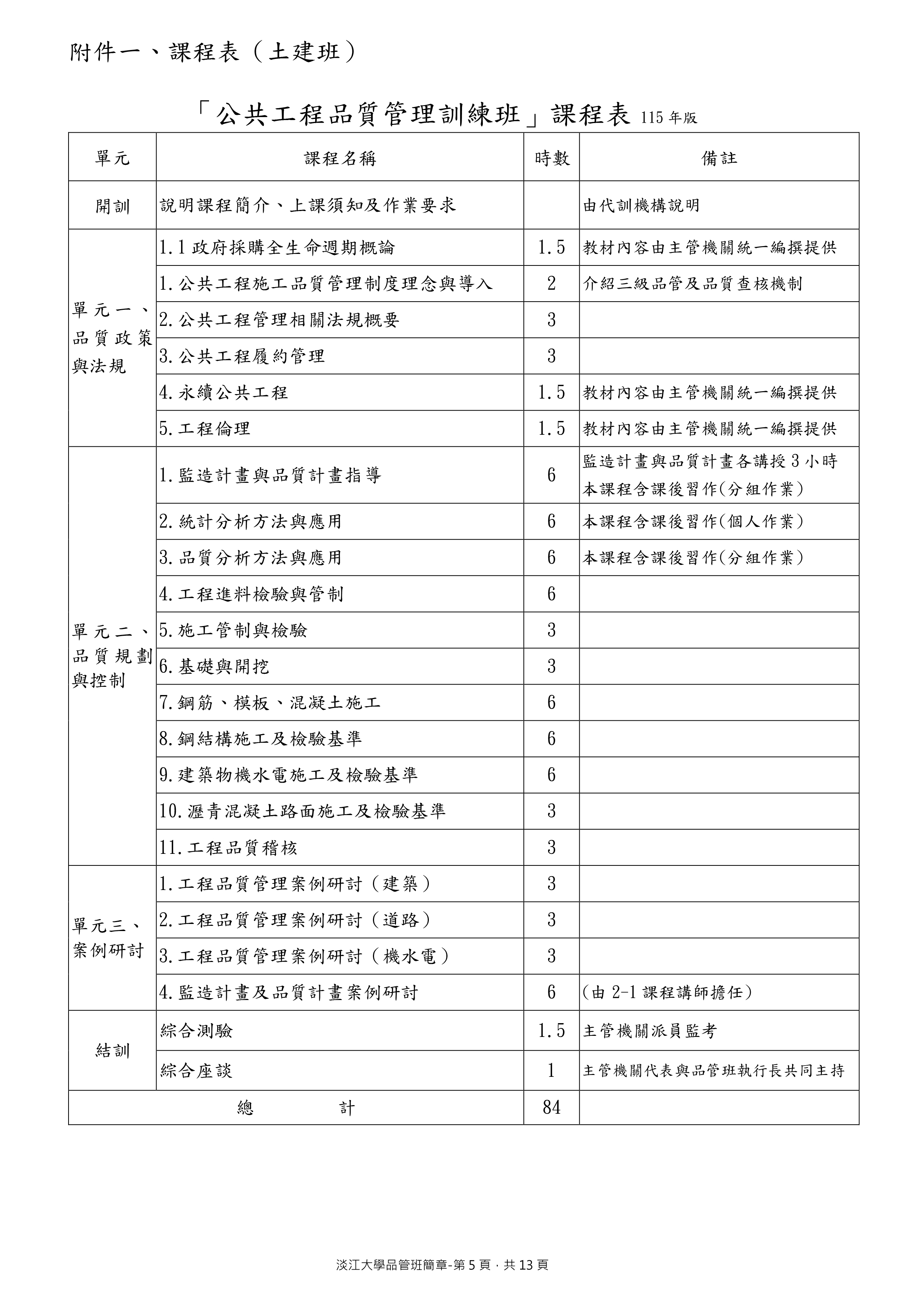 行政院公共工程委員會,委託淡江大學代訓練
