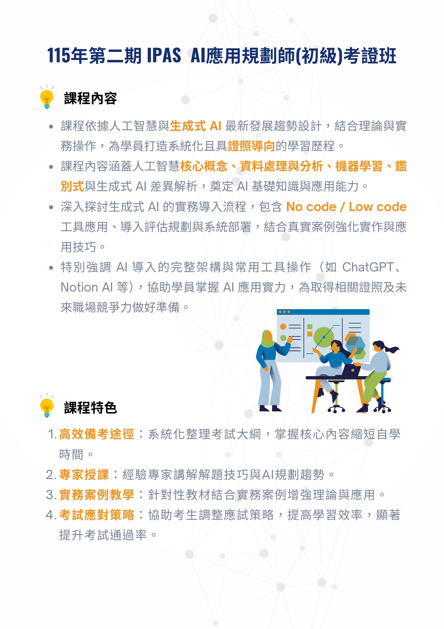 115年第二期iPAS AI應用規劃師(初級)考證班